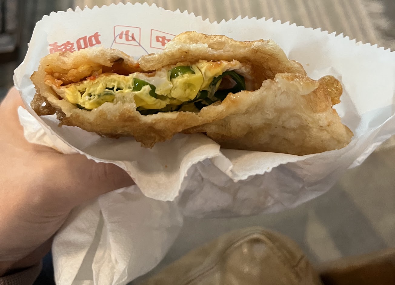 蔥油餅加蛋$50 蔥很多很香、齁甲!