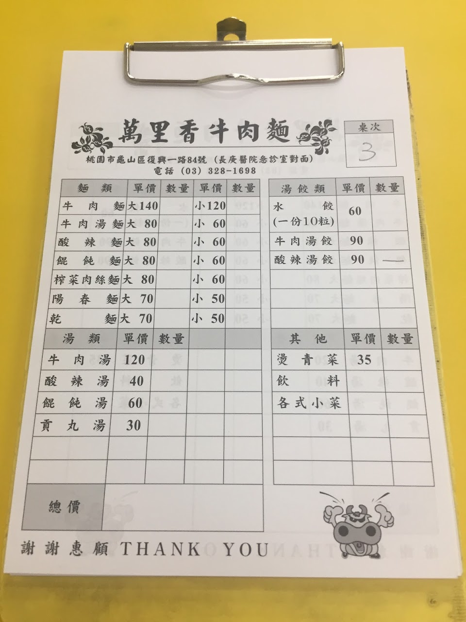 2024最新在地推薦餐廳的菜單_萬里香牛肉麵的菜單、圖片