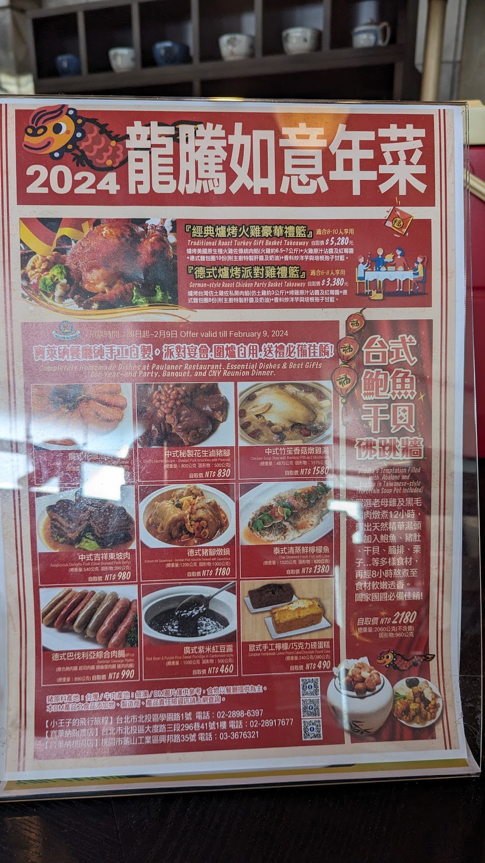 菜單上中式餐點、西式餐點、日式拉麵