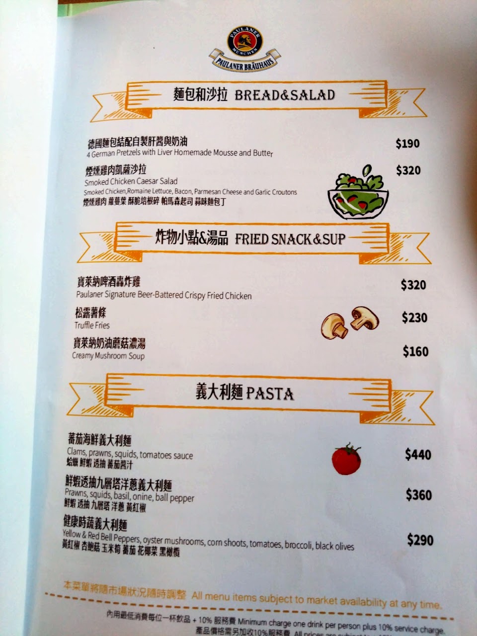 餐點普普通通 入門處有販售麵包 餐環境寬敞 裡面有啤酒bar可能也蠻適合來喝一杯的