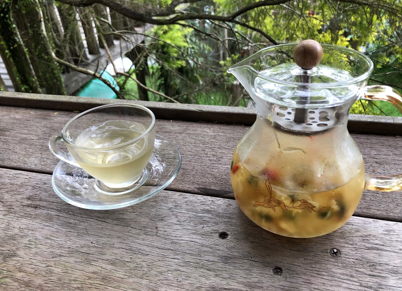 門口進來是鄧伯花廊,裡面有一大片用餐的空間跟寬闊的花園,園區整理得很乾淨整齊,點了在地自己栽種的金桔果汁跟金棗果汁,搭配紅豆抹茶鬆餅,是和三五好友聊天話家常的好去處。