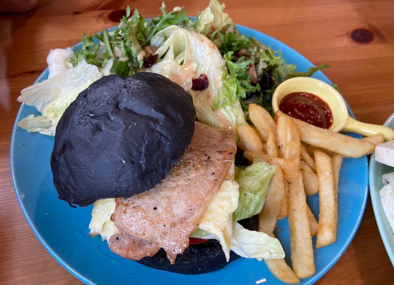 鄉間少見的澎湃早午餐,厚實的漢堡、豐盛有果肉的沙拉,平價美味。