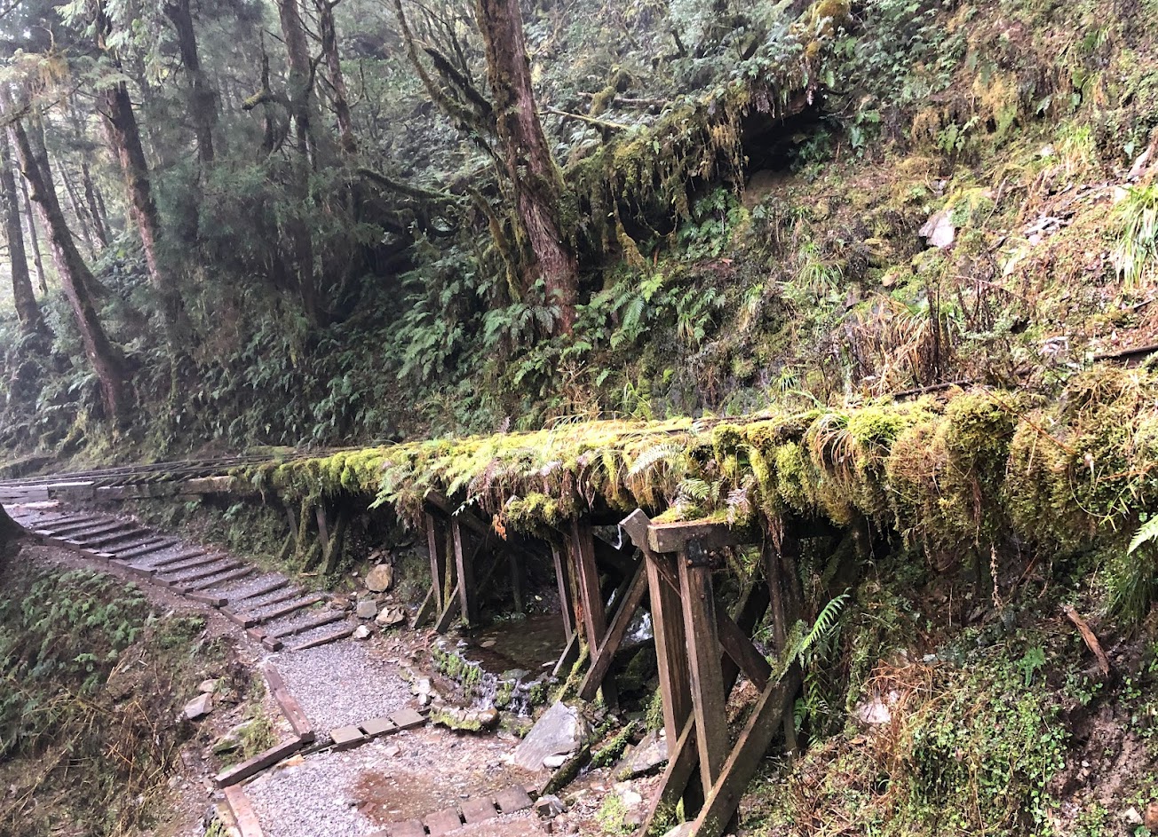 跟特富野相若,但短短900公尺,實在不過癮,長著青苔的朽壞木橋,訴說當年伐木的故事!
