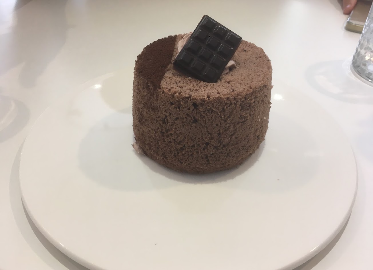 第一次吃到米戚風,蛋糕體沒有太多驚艷,內餡也ok整體也算是好吃的戚風,可可歐蕾普通沒什麼可可味,茶還不錯。