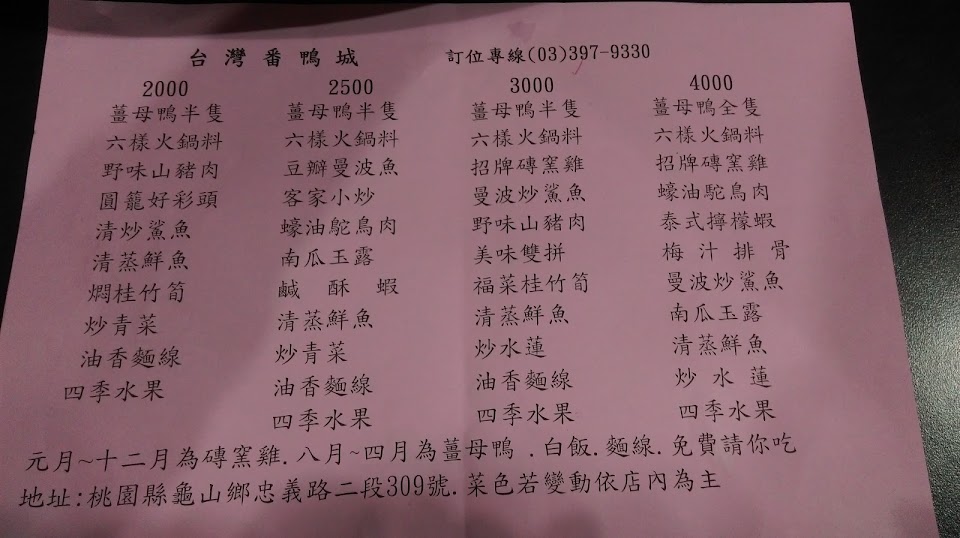 2024最新在地推薦餐廳的菜單_台灣番鴨城龜山店的菜單、圖片