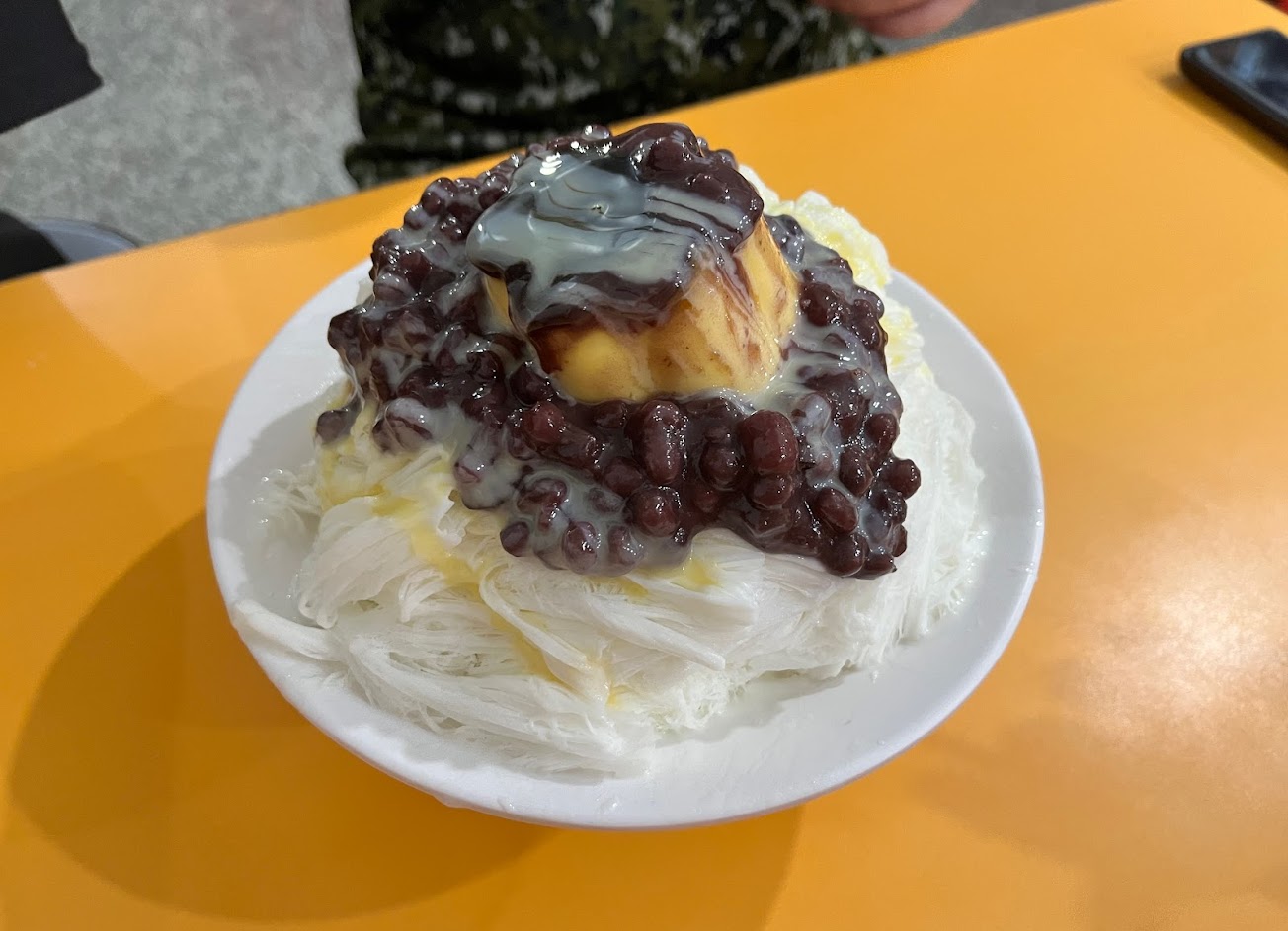份量比較適合兩個人一起分食。可能剛好點的冰的味道屬於微甜,配上面淋的醬一起吃有畫龍點睛的感覺。