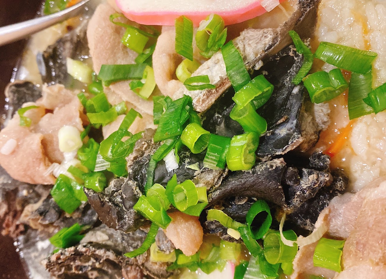 烏骨雞粥就可惜了,粥的基底與海鮮粥相近,感覺烏骨雞肉及豬肉片是煮好再另外放上去的,肉的味道並沒有融入粥裡;明顯感受到雞肉、豬肉、粥各自獨立互不相融。而且烏骨雞肉偏硬偏柴,不是我個人喜愛的口感。