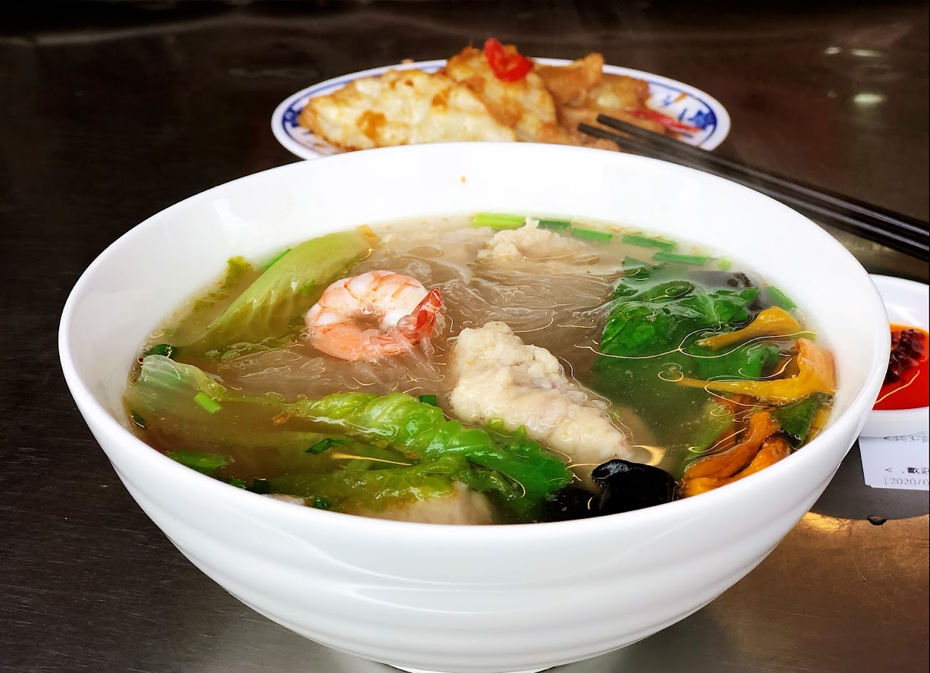 深受觀光客喜愛夯店,平日週二晚上約6點半,內用人潮仍頗多,排隊情況順位為2,還好來到秋天季節,坐於外頭桌位也不會太過悶熱,價格不是很便宜也不會太貴,此次享用魷魚麵羹、餛飩麵、滷肉飯、地瓜葉小菜,可自由選油、寬、細等麵體,無沙茶麵羹口感與湯頭甚佳,餛飩麵為一般,有點肥肉滷肉飯也不會太油,清醬油地瓜葉軟度不錯,期待下次再回吃。