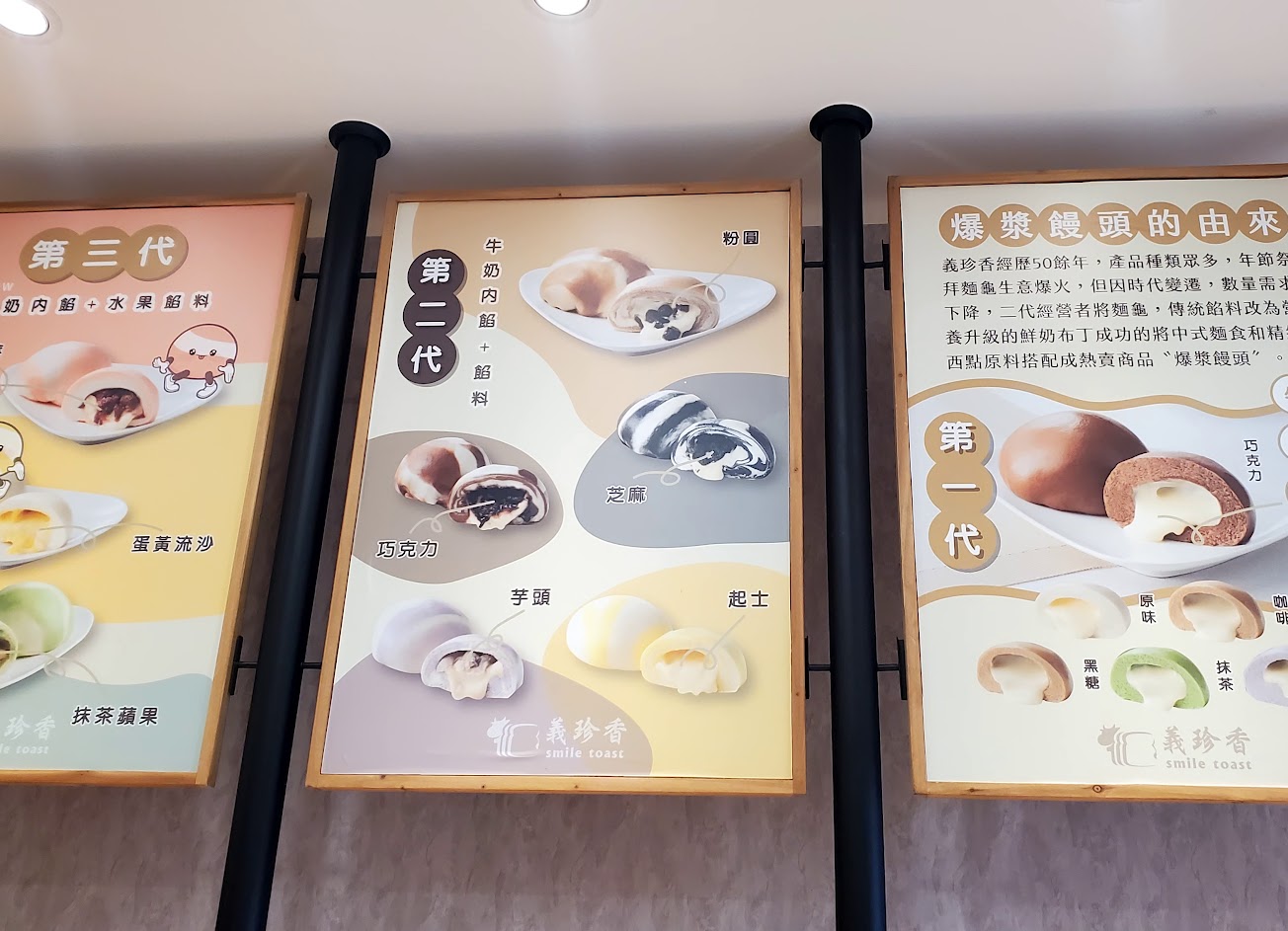 明亮的販售空間,主要販售特色爆漿饅頭,有多種口味,價格25~40不等