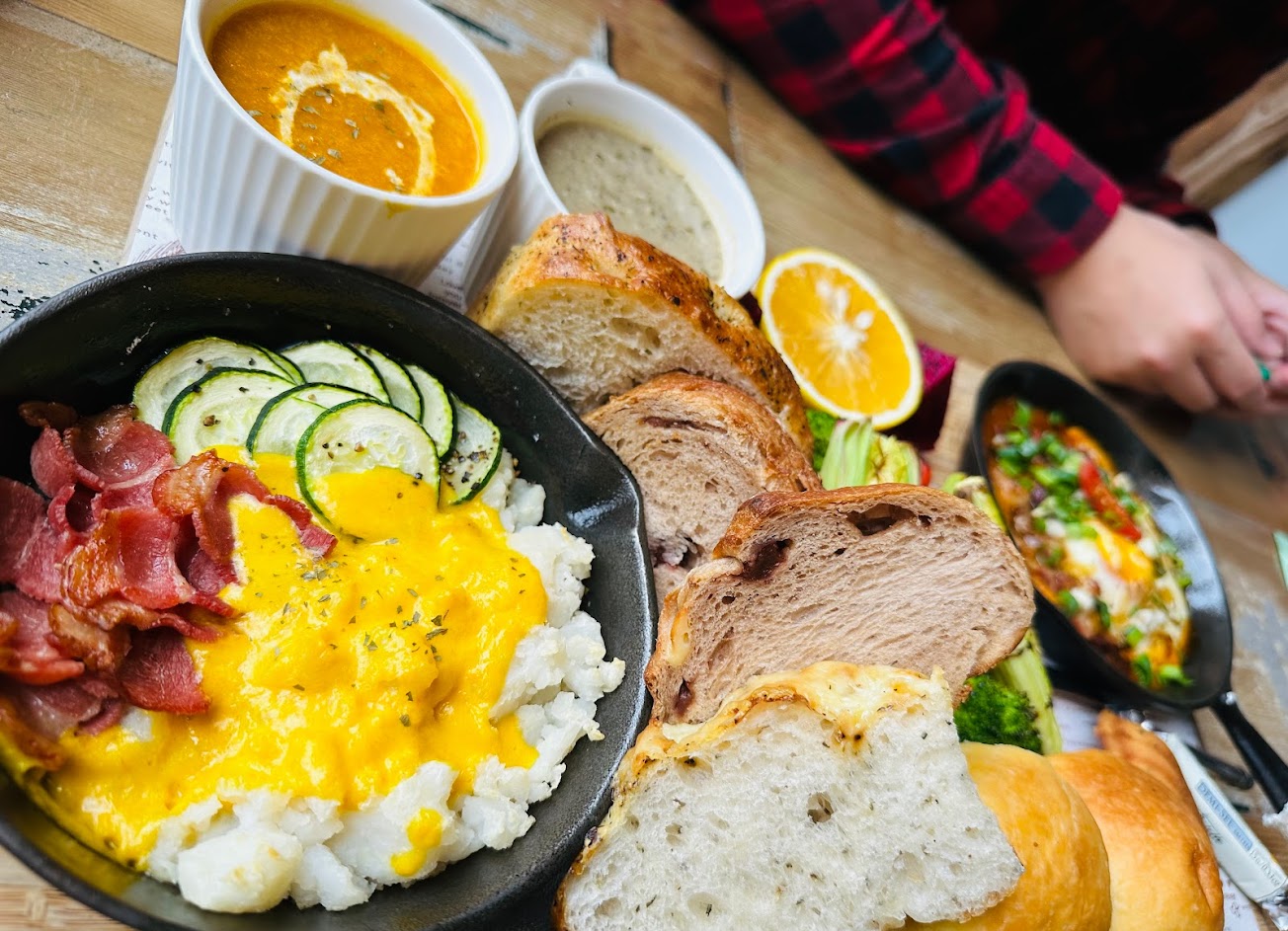 幸福雙鑄鐵鍋組套餐(三星蔥鴨胸跟義大利松露烘蛋)1080元,餐點內容非常豐富,美味的麵包(塗上奶油更誘人),濃郁的濃湯,烤蔬菜的水分完全鎖住,一口咬下令人驚喜,非常用心❤️