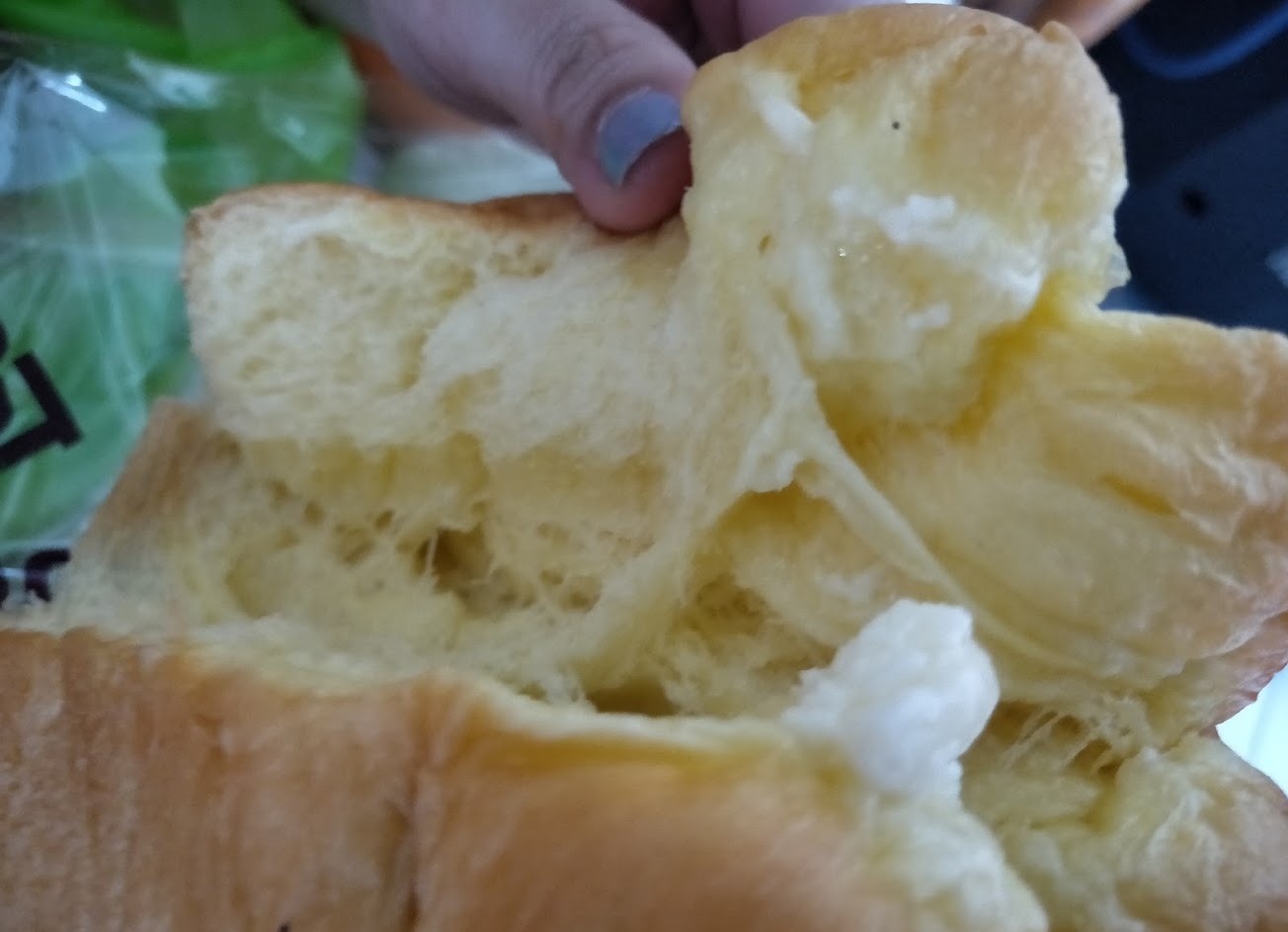 吐司第一口吃起來柔軟,但是手上滿滿的油膩感,很容易就膩口了。 與一般麵包店的鹹奶油吐司沒有什麼不同,只有價格更高份量更小。