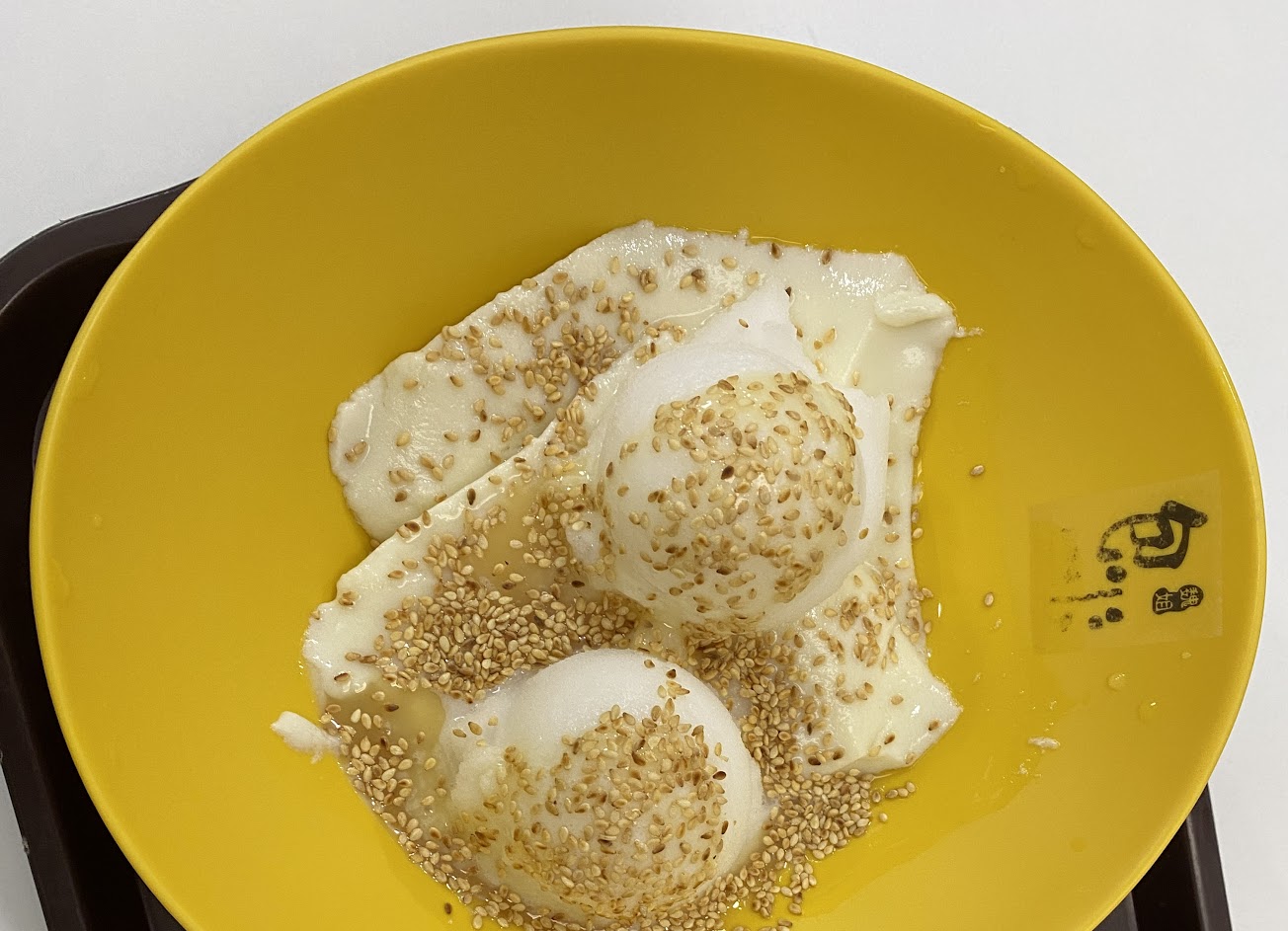 與在台北吃的記憶中,口味有些落差?兩球冰淇淋,口味近乎清冰,沒有什麼味道….看近期也有其它顧客反應這個問題,才驚覺不是只有自己的錯覺。整體吃起來口味超清淡(微甜),都是白芝麻的味道,應該取名叫白芝麻包心粉圓? 豆花沒有豆香,只有粉圓值得嘉許,口感很Q…… …