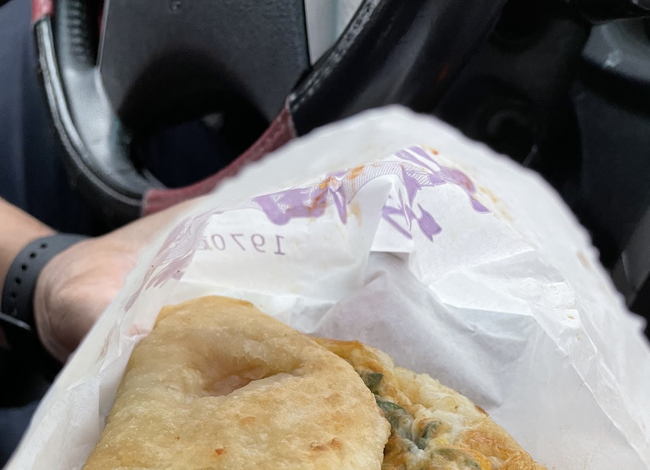 蔥油餅不油膩好吃,要排隊也不意外,旁邊有礁溪國小停車場,可以順便去買諾貝爾奶凍