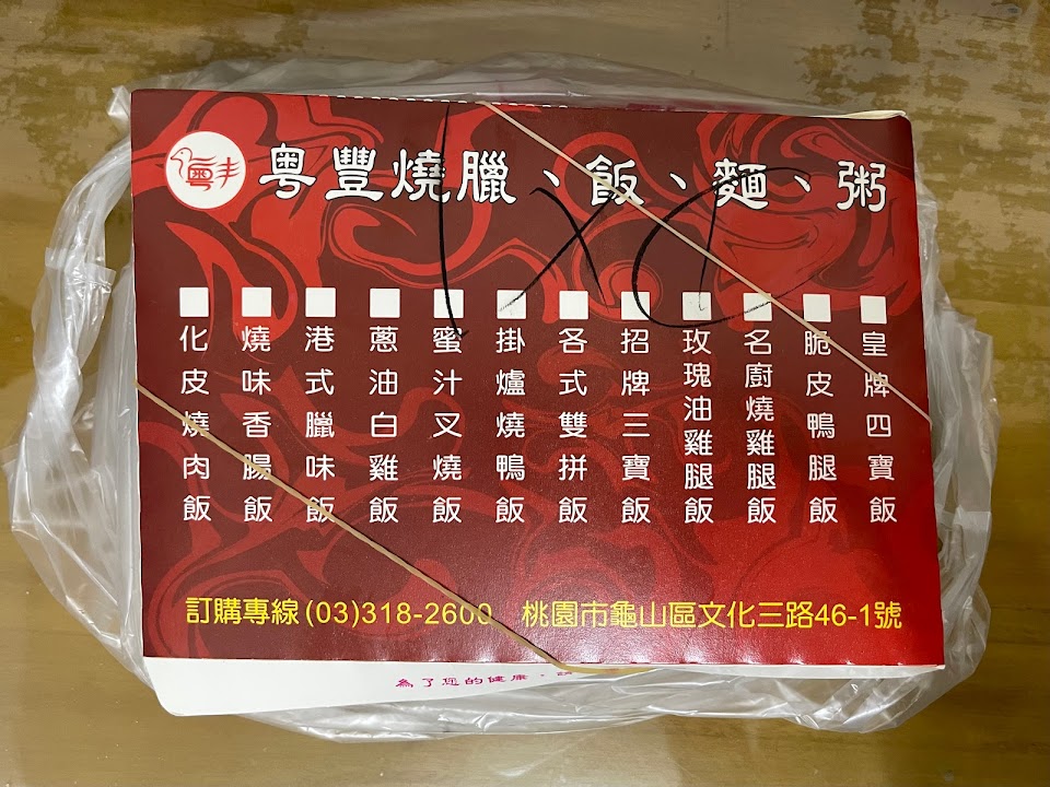 肉品味道跟香港和澳門的一樣好吃,上網查詢才知道,原來這間是影帝任達華的最愛,粵豐老闆也是香港人,又年輕又帥,雖然因為個性太酷,不過燒臘好吃,就算老闆冷淡我本人一樣崇拜啦??不得不說⋯台灣燒臘要好吃,真的老闆還是要香港人來經營才專業!縱使實在忙不過來,還是衷心希望foodpanda和Uber Eats也有粵豐這經典美食可以選擇~給超棒的您五星好評支持一下!謝謝香港老闆,真是愛您~?? …