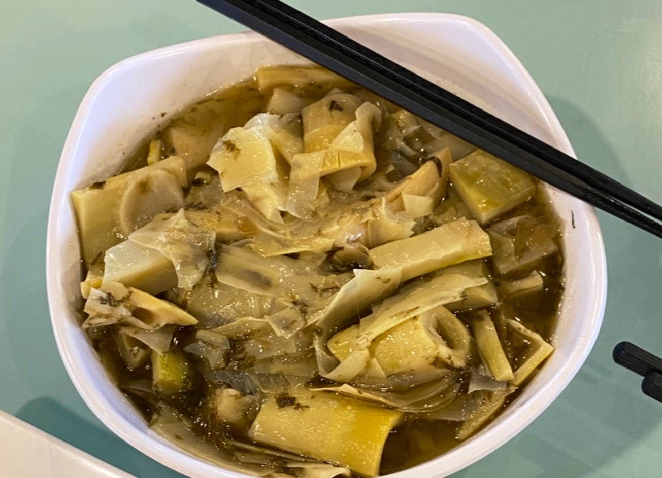 因為我們是二個人,店家還吩咐說不要點太多菜?三道就夠了,涼筍當季好吃沒話說,溫泉空心菜也炒的很脆,甕窯雞雖然不是很大隻、但是超嫩、超多汁、雞胸肉的部位撕細絲沾雞汁也不柴,沾胡椒鹽也不賴,整體好吃!(一隻雞4~5人吃應該還夠)