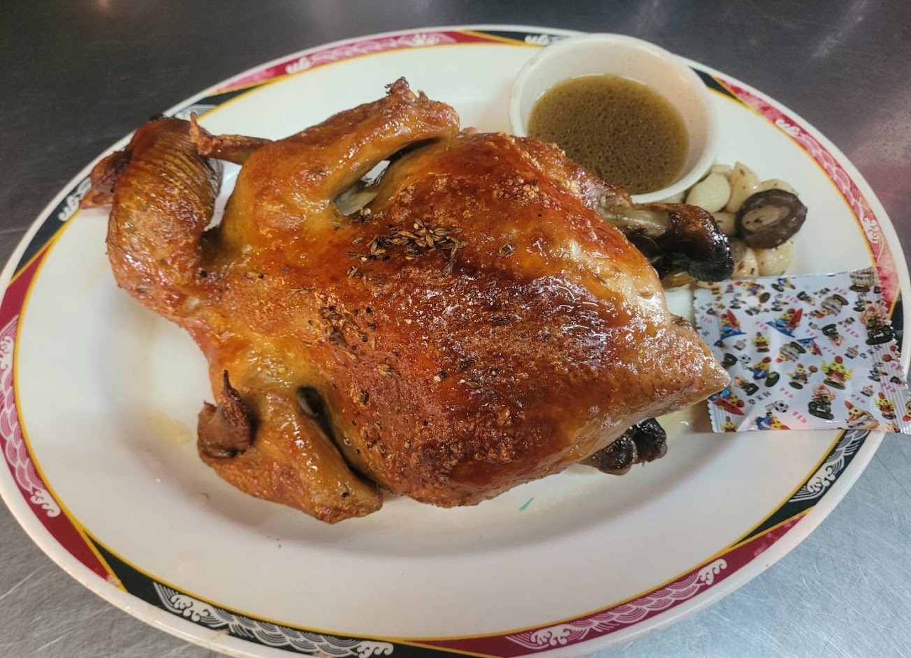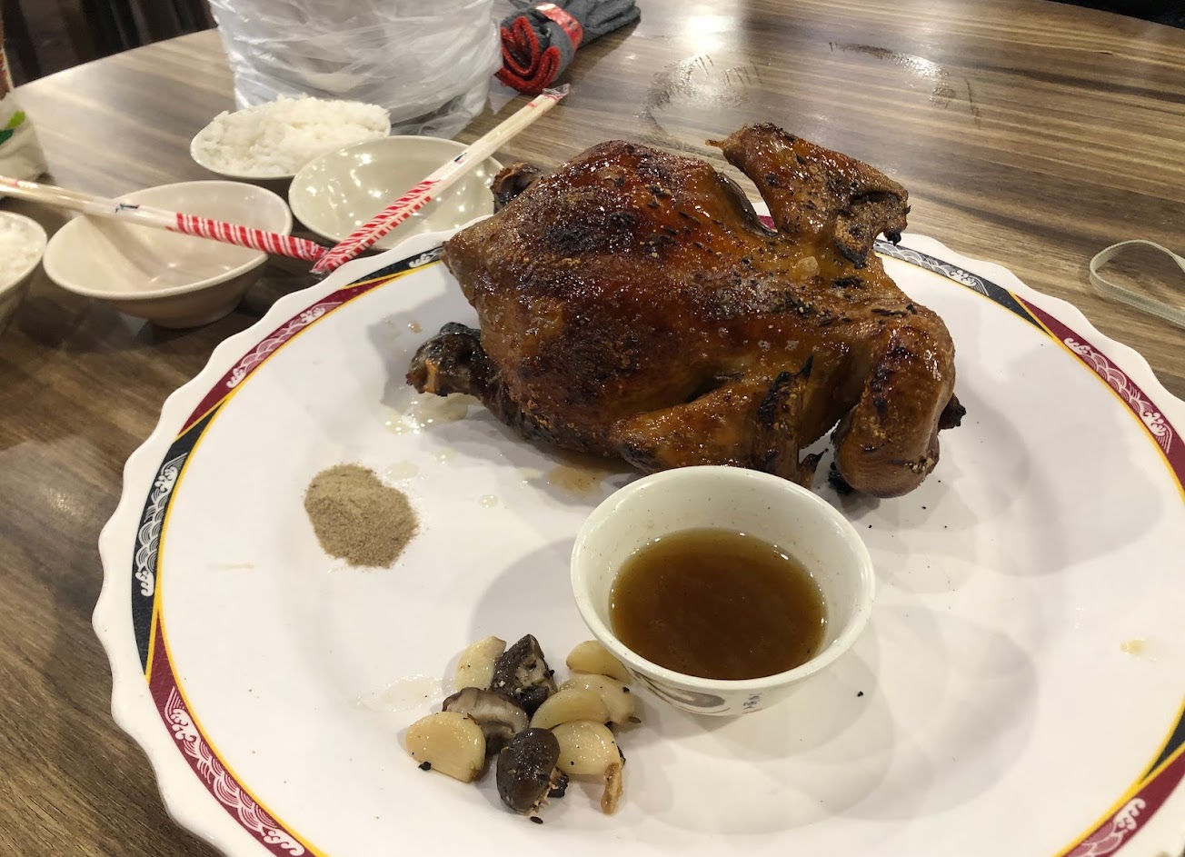 空間真的很大,桌數多得不得了,還先訂好位再來,結果看起來,好像也不怎麼需要,翻桌率滿高的,上菜也非常快,烤雞很香,味道也相當爽口。