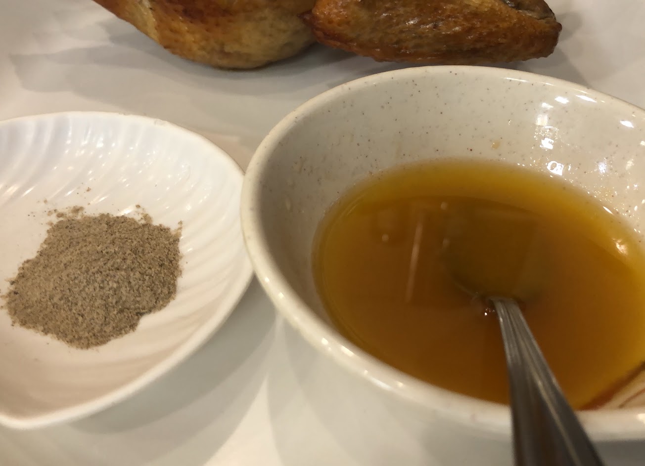 石窯雞肉質軟嫩不柴,此外店家也有提供雞油與胡椒粉可以沾;後續加點的水蓮表現較佳,而且份量不少;月亮蝦餅很好吃!
