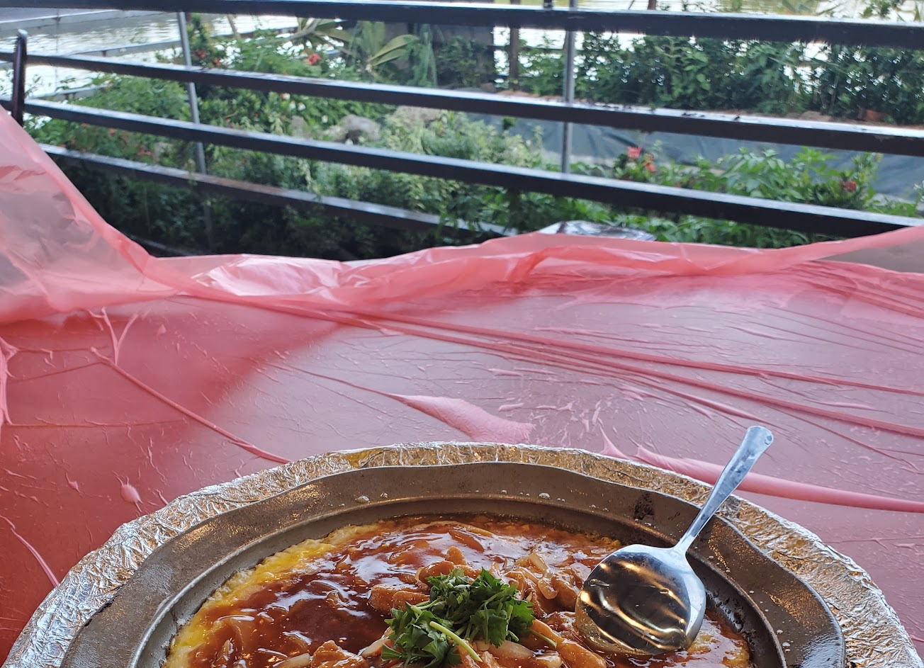 餐廳就在魚塭旁
