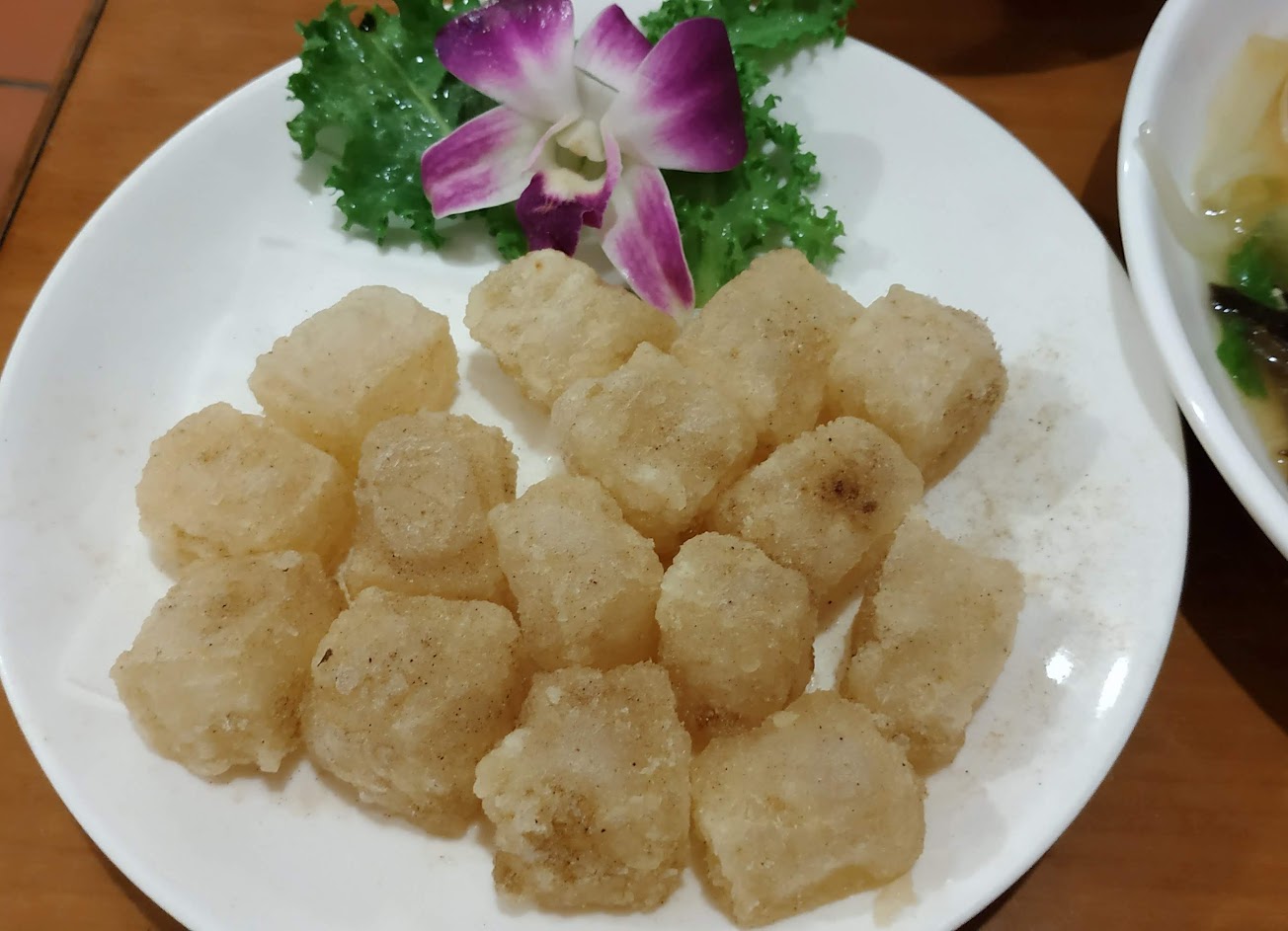 第一次吃糕渣,個人覺得相當好吃,吃起來有一種透明的蛋豆腐的感覺,其餘小菜部分相當下飯,且價位不高,店面裝潢相當有特色,且離車站很近。