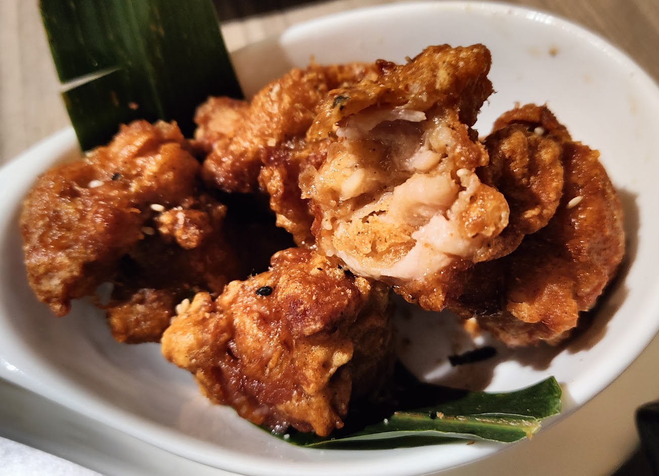 唐揚雞做的很好,汁有鎖住,蕎麥麵也很棒,烤鮭魚有點小隻不過才100非常便宜