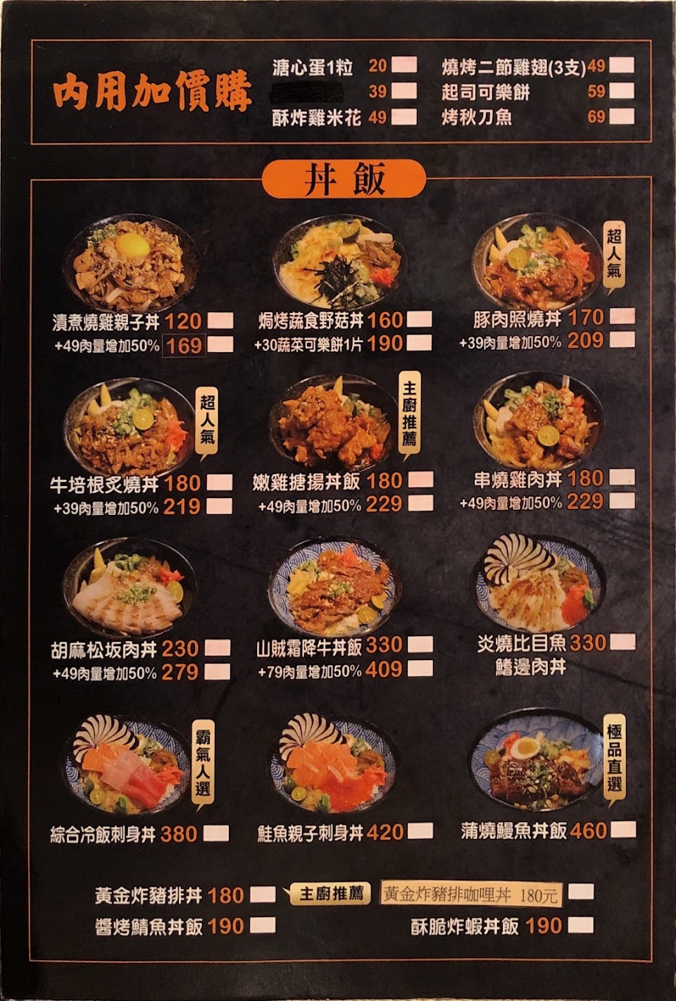 但丼飯有點令人遺憾,菜的種類黃色那個吃起來像是罐頭水果?希望可以改成其他蔬菜?(像是不同種類的菇類,如果想要清爽感我寧願是小黃瓜,加的起司很好吃