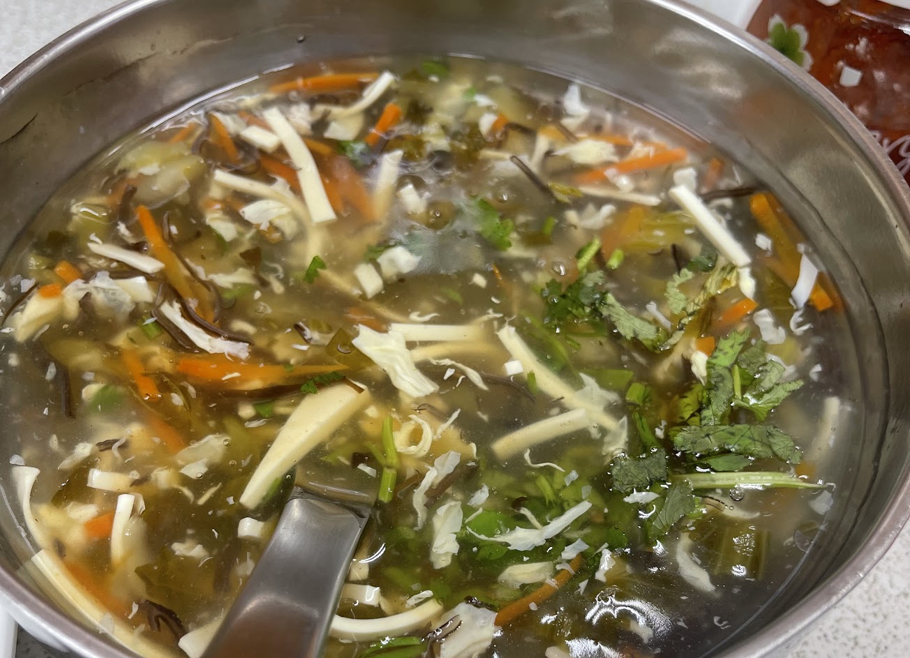 酸辣湯個人不推薦,口味即為清淡,但可自行加醋做調味。