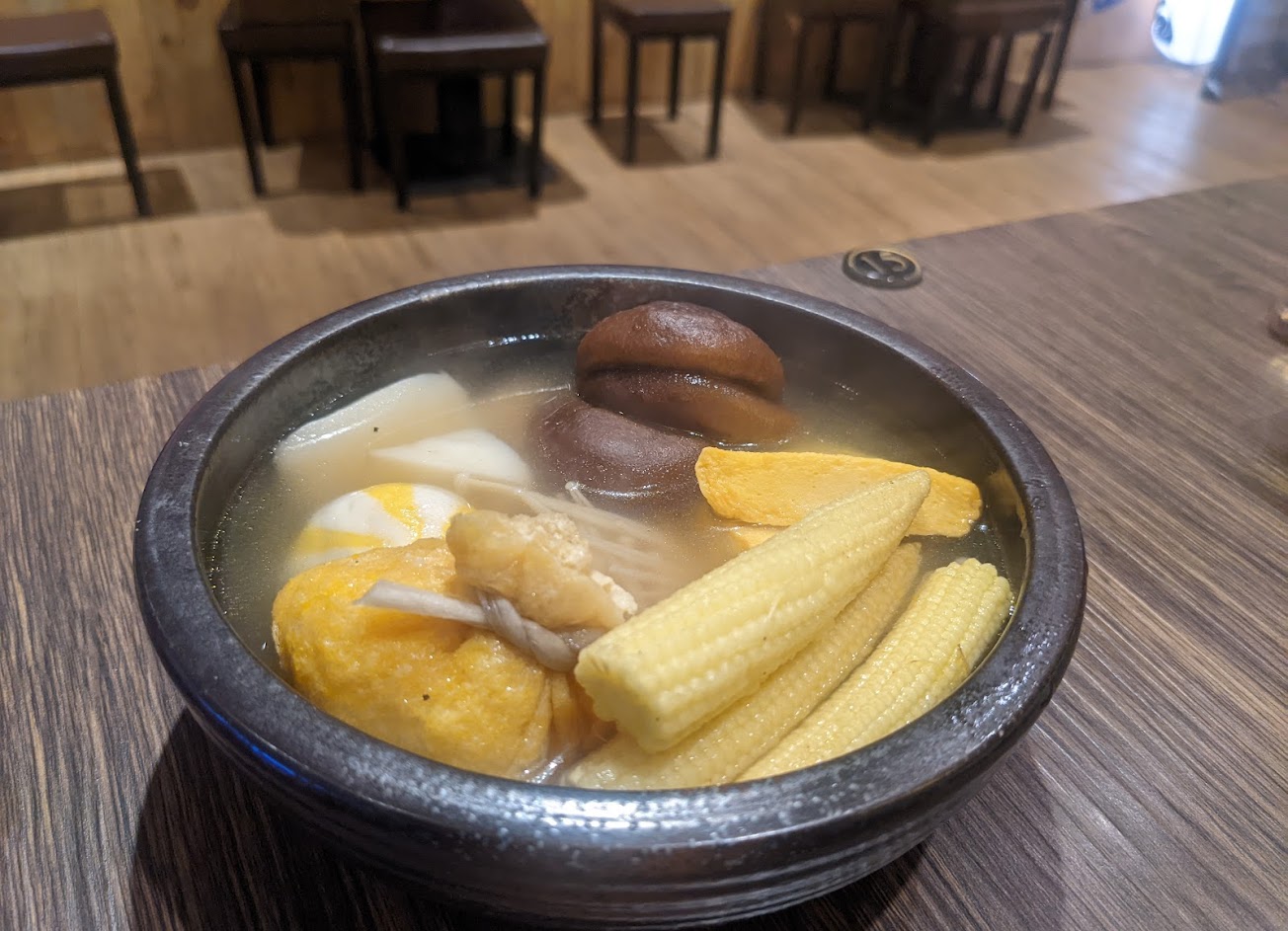 湯的部分說真的是不錯,但是關東煮過於單調,也都只是另外川燙過的完全沒有入味,除了湯頭其餘真的很一般,真的需要多加改進一下!!