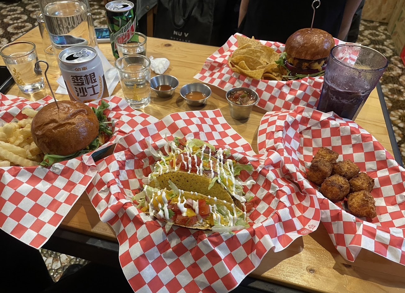 我們都吃漢堡或塔可會再點個馬鈴薯餡餅,漢堡跟塔克料都很多,塔克皮很酥脆,搭配滿出來的蔬菜跟底層的肉,口感層次多元,在外面很少吃到。