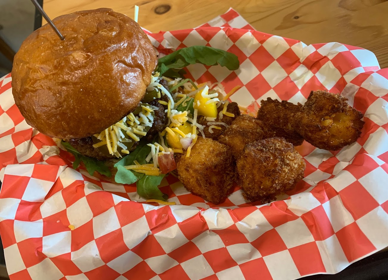 50/50 漢堡配炸通心粉芝士球,不錯!!