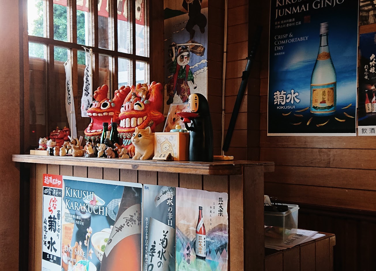 裡頭位置不多,所以要吃的話,建議提前打電話來訂位,一進去就感受到,慢慢的日式風格,各種叫得出來、叫不出來的東西依據整齊掛在牆上