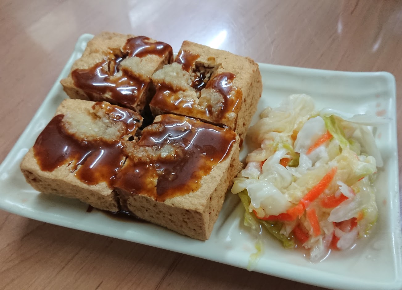 酥炸豆腐有4塊,咬下去驚為天人,外皮清脆而不油,也不會太乾硬而感到喉嚨癢或乾澀