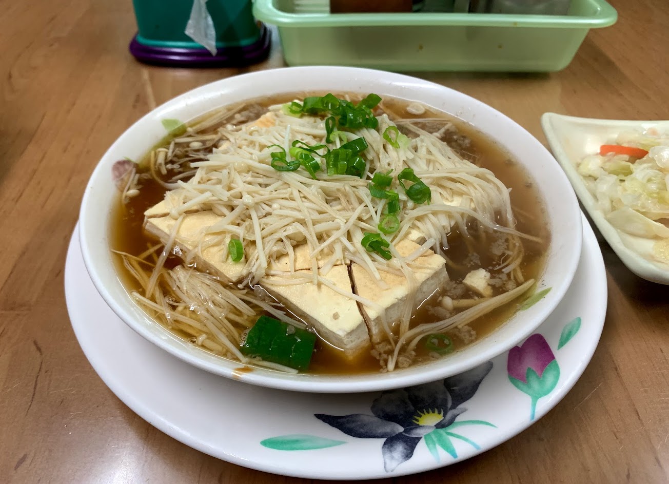 清蒸豆腐很入味,湯底是肉燥,加上青蔥金針菇 第一次吃到這種搭配,只能說絕配!