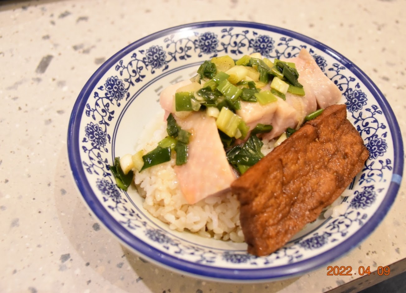 便當給的菜色很豐富,有雞肉、青菜、筍絲、豆腐、蒸蛋、香腸,配菜調味上都蠻合我口味,不會太鹹也不會太油,雞肉是雞胸,口感很嫩,完全不會乾柴,蔥油很夠味,只不過蔥味有點被胡椒搶了風頭,但還是好吃?