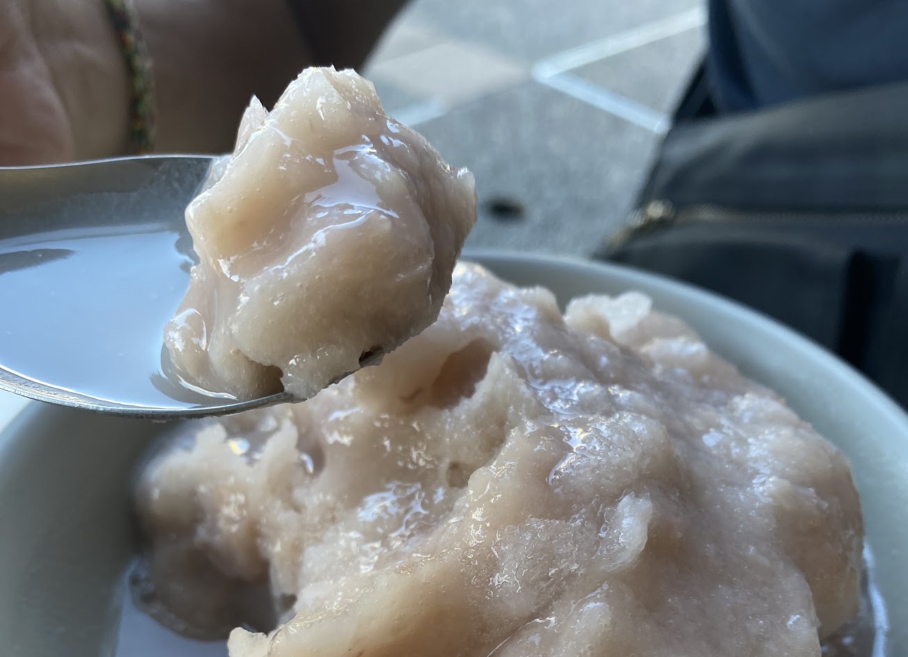這裡是洋菜口感的豆花,吃不到豆花香…喜歡綿密口感豆花的人不要點豆花! 芋頭冰吃得到綿密芋頭顆粒口感,芋頭控可以試試看!