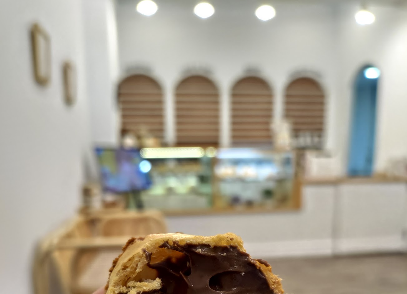 喜歡在店裡現吃泡芙那種外皮酥脆、內餡滑順的新鮮口感,覺得可以ㄧ顆接著ㄧ顆