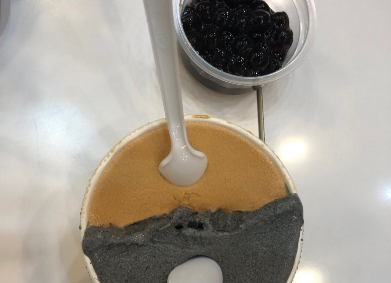 必試珍奶口味,茶香奶香都很到位,珍珠跟冰淇淋混合後更Q彈,好吃!
