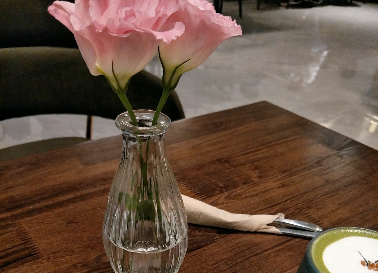 內用低消是一杯飲料,這次點了冰美式、抹茶牛奶及巴拿馬手沖咖啡,咖啡表現中規中矩,搭配甜點蠻解膩的;抹茶牛奶的抹茶粉味道濃郁且有微微苦澀,不會太甜蠻好喝。