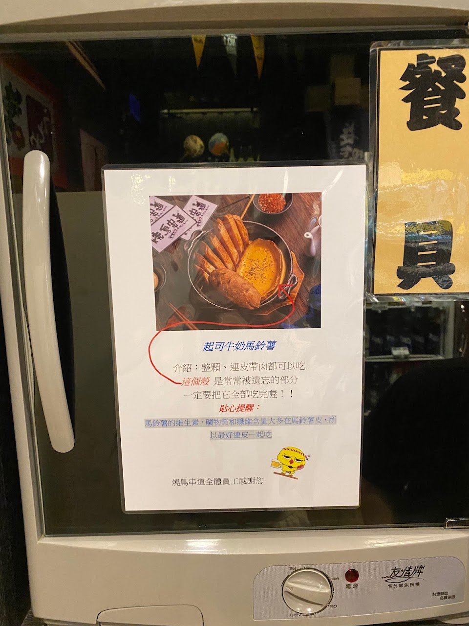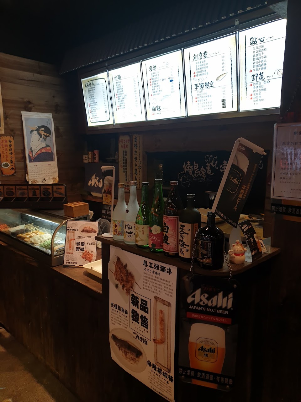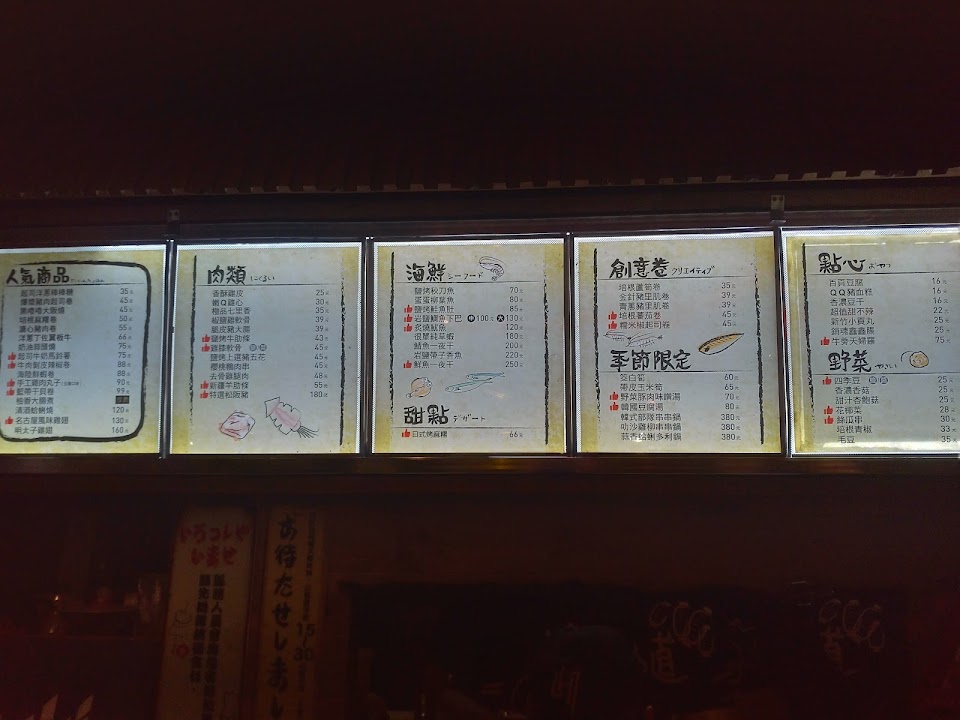 點餐的時候需要自己從冰箱拿,但是冰箱裡面的牌子看不到價錢非常麻煩,也很難估算自己到底拿了多少錢,點完餐之後我看到店員是先把食物拿去炸,這點完全顛覆了招牌上寫的燒鳥。食物上來之後發現幾乎所有食物的調味都一樣,刷了甜醬油再灑調味粉,都是醬油跟孜然的味道,然後因為是炸熟的肉外面很容易乾硬,肉串這樣吃也還可以只是很單調。然後洋蔥串這樣炸完裡面還是半生,洋蔥的甜味沒出來只有嗆味,吃一半就不想勉強自己了。以單價較高的來說,草蝦沒有預期多好吃,但是炸過之後真的不行,松阪豬肉還可以不過份量跟草蝦一樣很少,以這表現跟價位對不起來吧?馬鈴薯則是炸過之後整個黑嚕嚕,完全不是預期中烤過鬆軟的感覺,不過店家也沒有說是用烤的,就當自己想太多吧!另外店家還提供飯跟配料讓客人做成貓飯或茶泡飯,雖然不收費,但是不得不說那個高湯真的很淡,鮮味鹹味都很淡。整體來說,食物表現跟價位完全不搭,但是服務人員的態度不錯,這點還是要給櫃檯一些鼓勵。