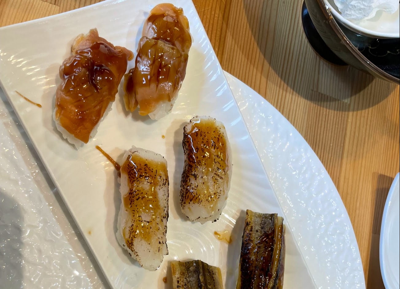 前面小菜有點偏甜吃不太習慣,小點花壽司偏酸,淡菜配酸奶蠻好吃的還有薄荷香,但是重頭戲握壽司十分好吃,不是一般般的炙燒壽司而已,漁獲不僅新鮮,師傅握的米飯讓富含油脂的魚肉充分伸展,芥末點綴的恰到好處,部分壽司還有微微的柚香,最後甜點將嘴帶入清爽的感覺十分特別,建議店家: