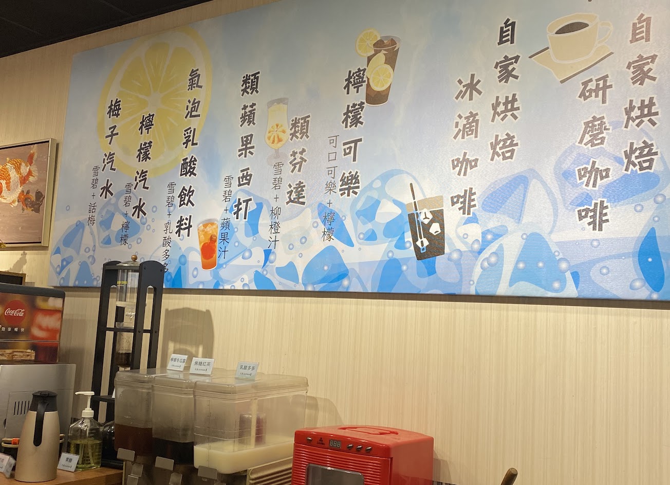 上菜算快,也有多種飲料任君選擇,牆上也有飲料建議,可以自己調配喜歡的口味!自家烘焙豆的冰滴咖啡順口好喝。