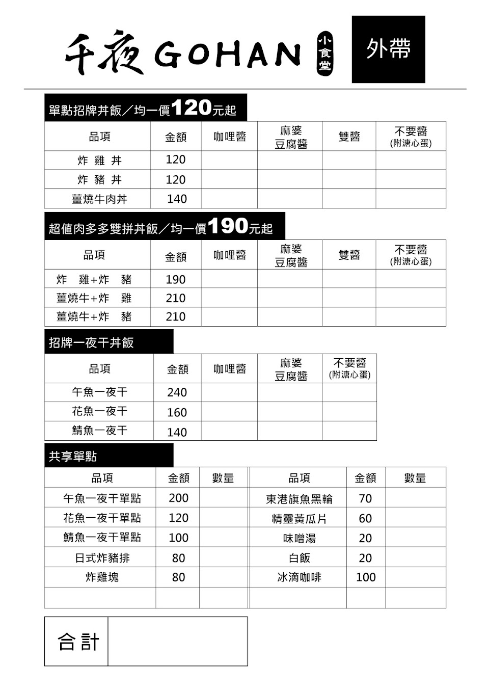 第一次品嚐。一夜干鯖魚套餐,魚肉帶汁,不錯。 壽喜牛丼也不錯吃,但,外帶的唐揚雞塊,比鹹酥雞難吃。 服務 外帶 餐點類型 午餐
