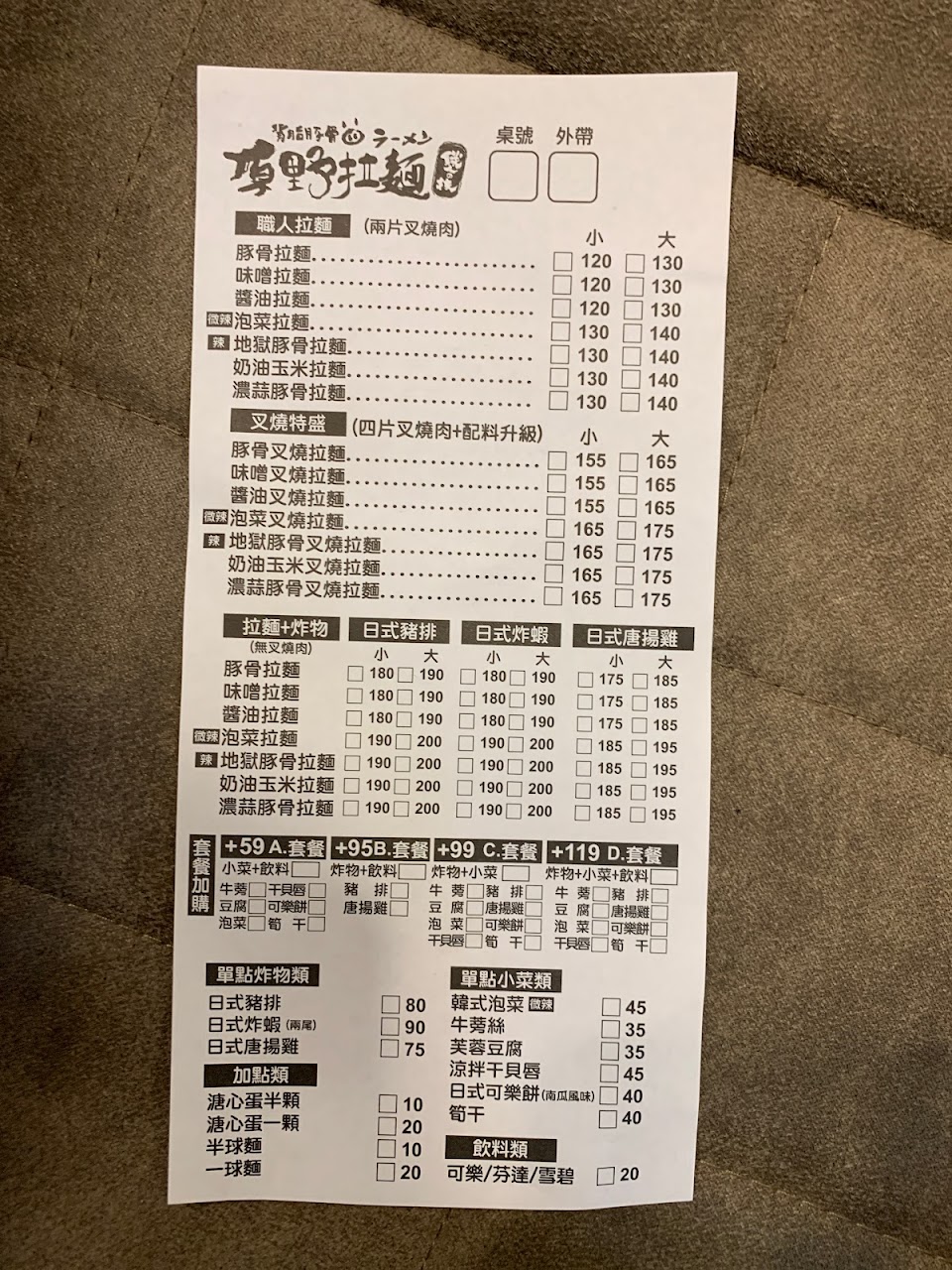 2024最新在地推薦餐廳的菜單_原野拉麵的菜單、圖片