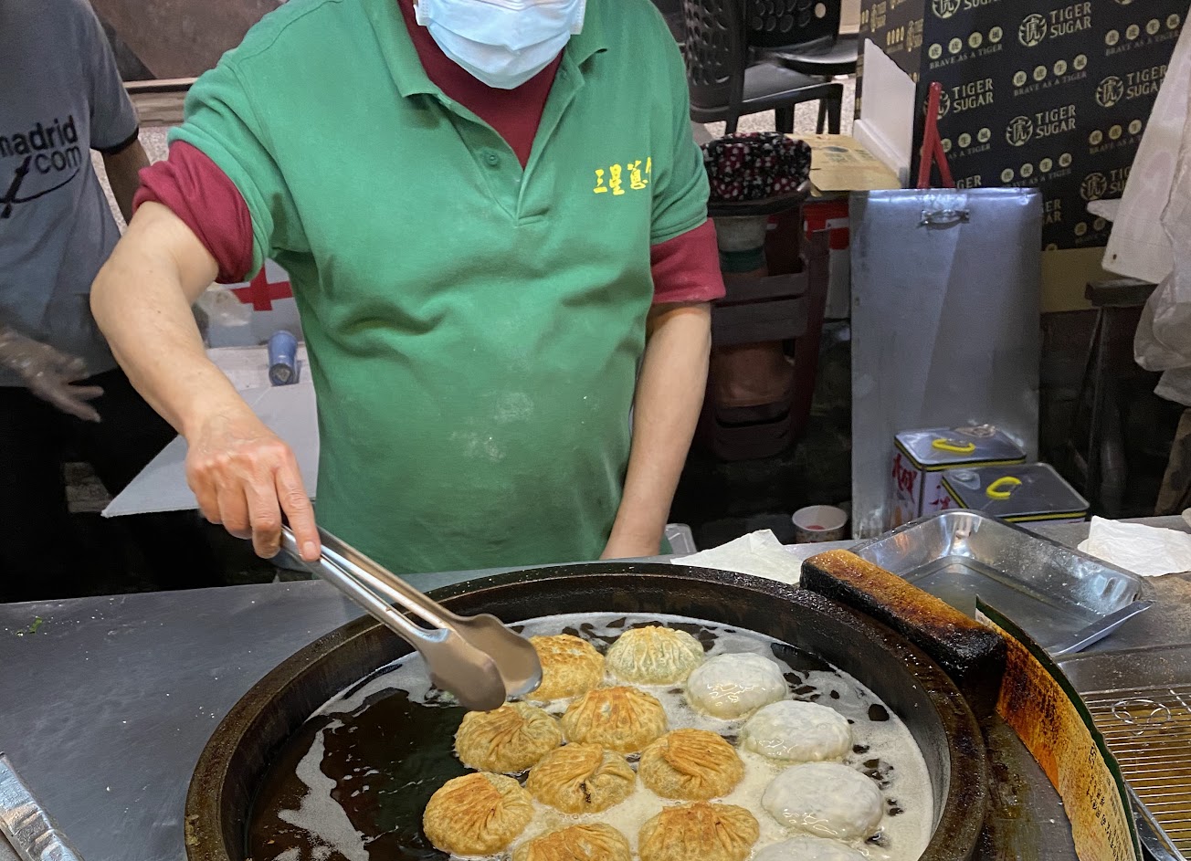 在非假日的晚上仍然排隊的 知名小吃,它滿滿的蔥末在餅皮裡面,個兒大小差不多有一個女生拳頭大吧 !咬下去外皮酥脆蔥汁噴出甜而不辛辣,真的是太銷魂了。