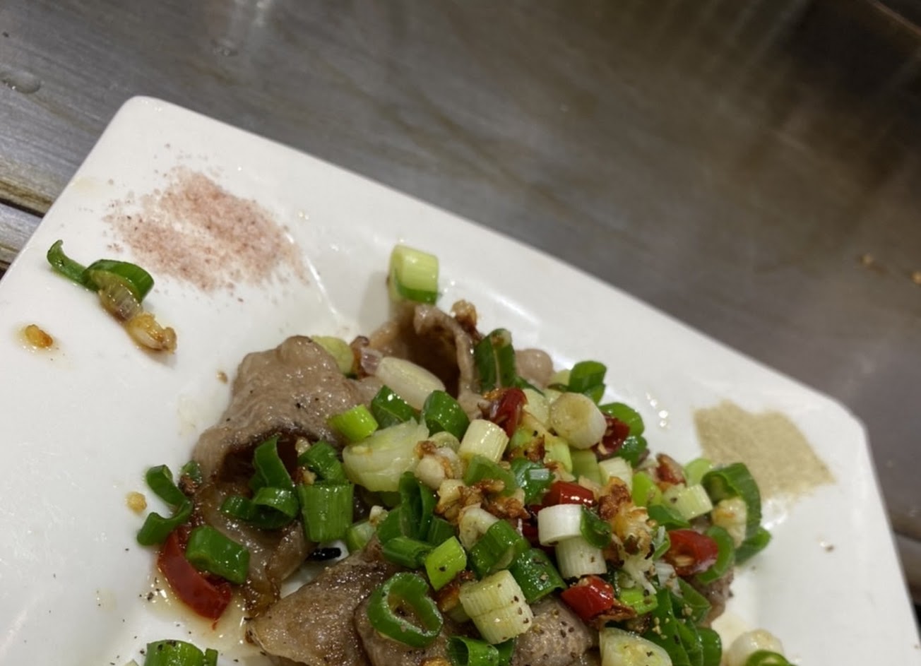 第二名給鐵板豆腐,表皮煎得脆又香,搭配蔥蒜油鹽拌炒得辛香料,非常下飯。