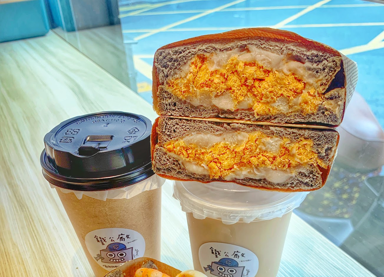 這次點的是比較有人氣的鐵板牛蔥蔥和芋頭肉鬆吐司。吐司部分是灰色的,而且滿柔軟的,口感不錯。而內餡味道也都恰到好處芋頭不會太甜,肉品也不會太鹹。但要說有甚麼特別的,其實味道沒有特別突出。