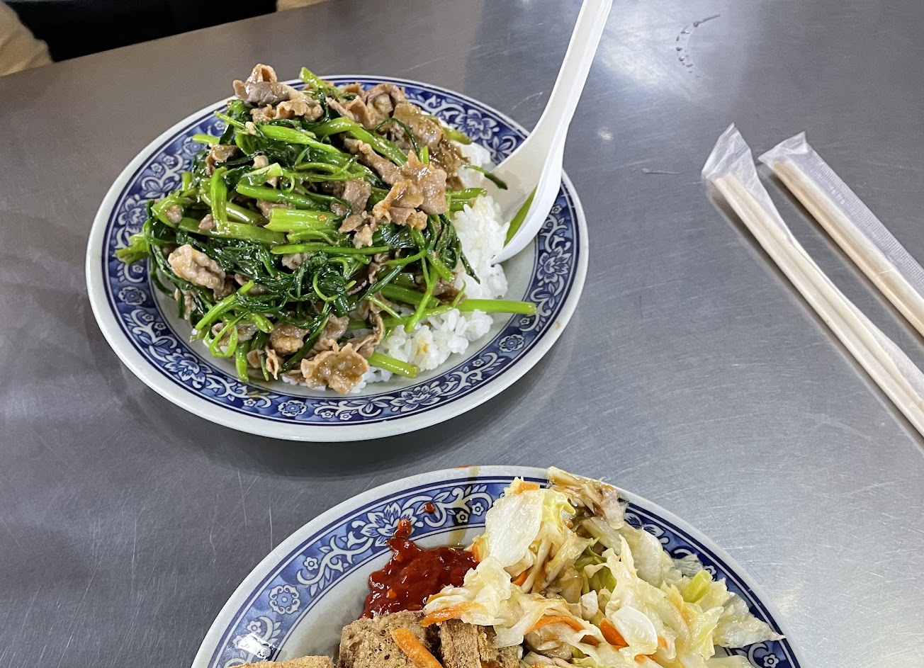 點了沙茶羊肉飯、乾麵線跟臭豆腐,白飯給超多,適合很餓的人;麵線鹹度適中,蠻好吃的;最喜歡炸的酥脆外層的臭豆腐,泡菜也很好吃!整體來說都蠻油的,大家參考一下。
