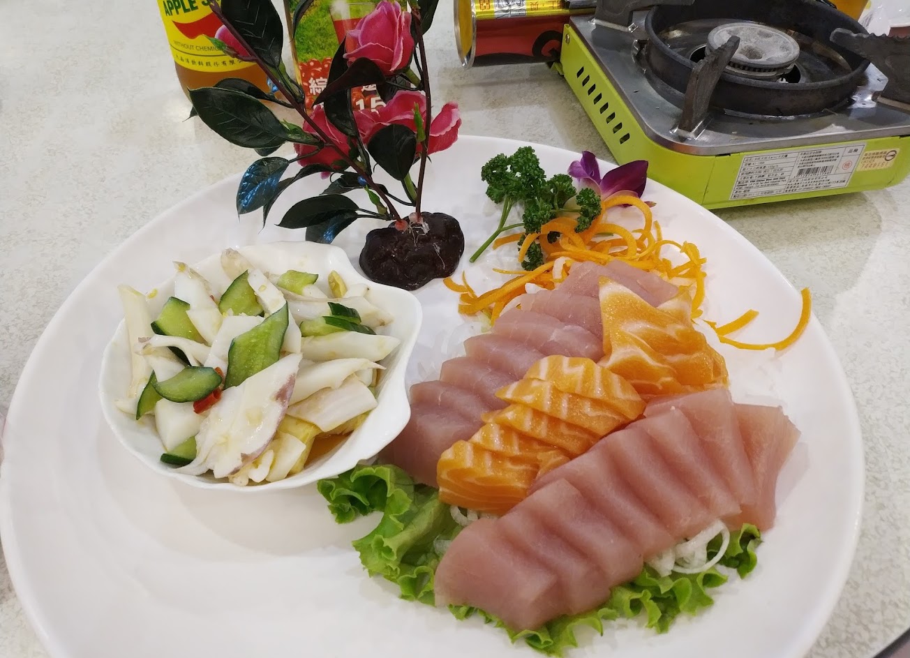 生魚片新鮮,澎湃的海鮮,料好實在,適合我們一家大小,全部餐點吃完。