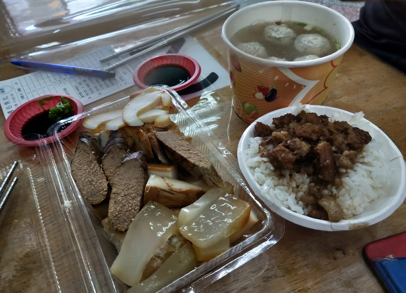 拼盤100元,好吃。 滷肉飯好吃。 魚丸湯普通。