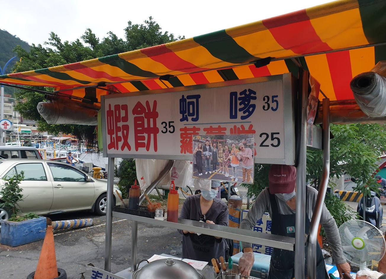 漁港路邊兩老夫妻經營的小攤車,販賣蝦餅,蚵嗲,蘿蔔糕,蝦餅蝦味十足又鮮脆,銅板價格好實在,路邊來回經過都大排長龍,隨性買來吃看看,真的很不錯哦