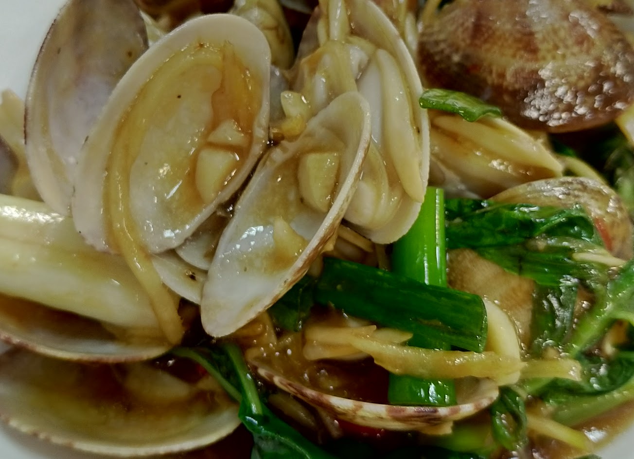 清蒸馬頭魚有一股奇怪的塑膠味,明顯有不新鮮的疑慮;蝦子與炒山蘇都還算正常,海瓜子的大小,可能考驗著來用餐人的好運氣。